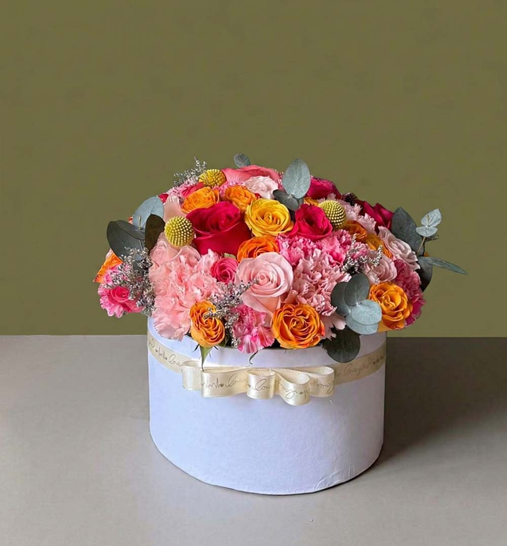 El Cilindro Floral Mediano es una opción elegante y sofisticada para cualquier ocasión. Este arreglo presenta una hermosa combinación de rosas en tonos vibrantes, que van desde el rosa hasta el melocotón, creando un efecto visual deslumbrante. Colocado en un cilindro decorativo, este diseño es ideal para alegrar espacios en el hogar u oficina.