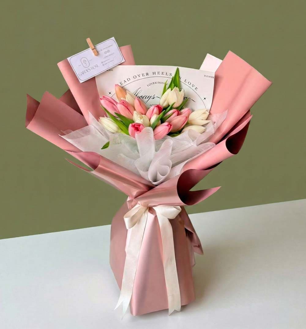 Descubre la elegancia y frescura de nuestro Bouquet de 18 Tulipanes. Este encantador arreglo presenta tulipanes en delicados tonos que evocan la primavera y la renovación. Con un diseño moderno y sofisticado. Perfecto para celebrar momentos especiales como cumpleaños, graduaciones o simplemente para alegrar el día de alguien querido.